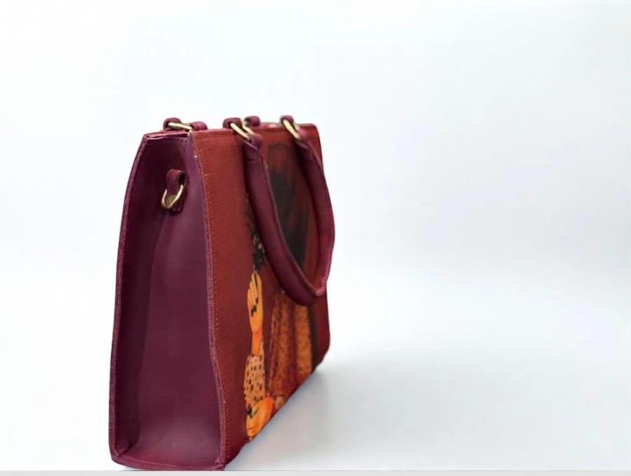 Hijabi Girl-Inspired Tote Bag – Elegant Blue & Red for Modest Fashionistas