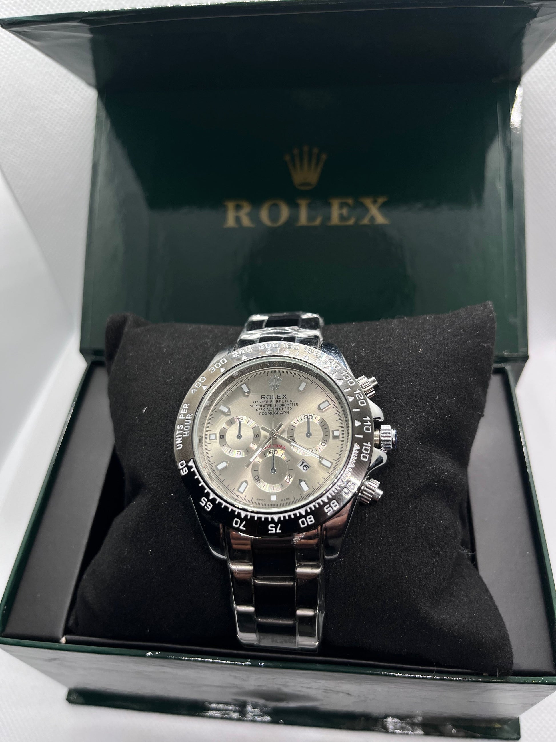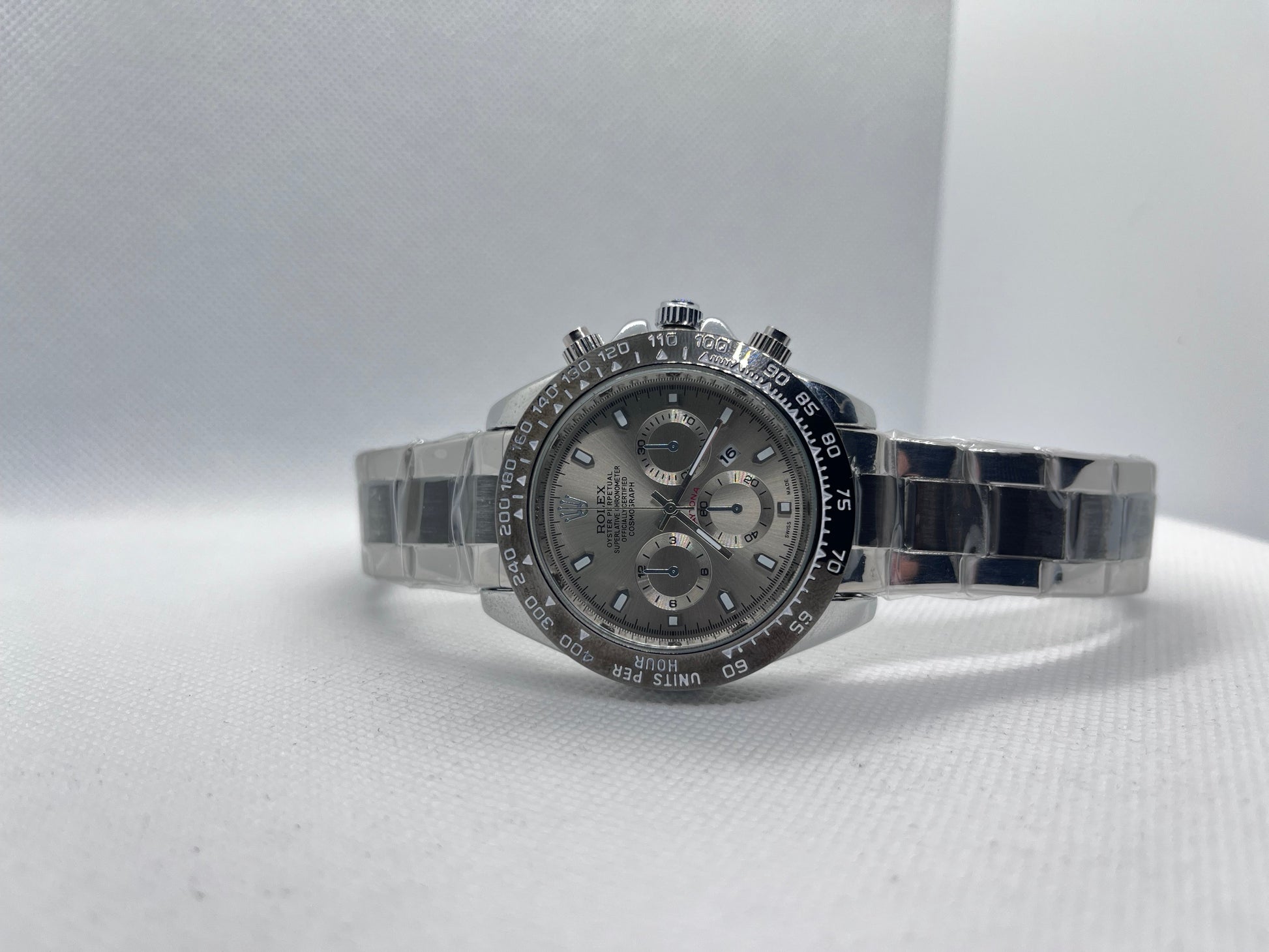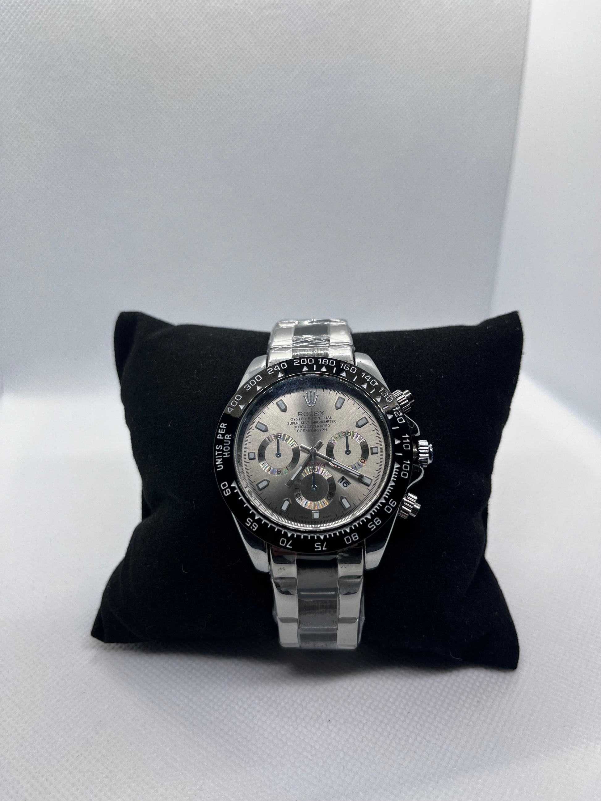 The Rolex Silver & Black is the epitome of sophistication, combining sleek design with unmatched precision. Its black dial contrasts beautifully with the polished silver stainless steel case and bracelet, creating a bold yet refined aesthetic.